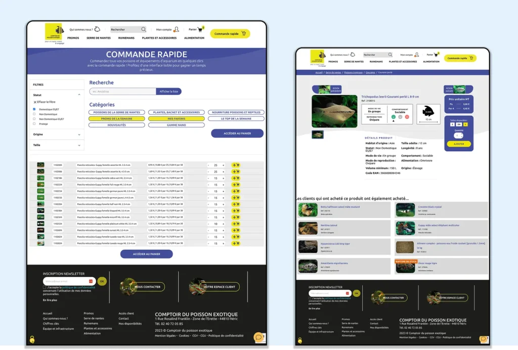 Comptoir du Poisson Exotique est un site e-commerce B2B destiné aux professionnels, conçu à partir de PrestaShop, puis profondément transformé pour répondre à des besoins métiers complexes.
